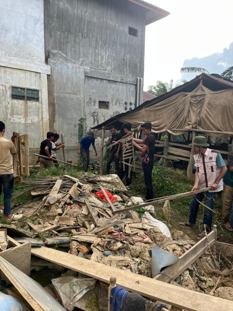 Mereka bahu-membahu dan bergotong royong menyingkirkan puing-puing sisa bencana. Tujuannya adalah untuk memulihkan akses dan membersihkan lingkungan agar fasilitas desa dapat kembali layak digunakan, khususnya sebagai titik sentral pelaksanaan program kerja mahasiswa ke depannya.