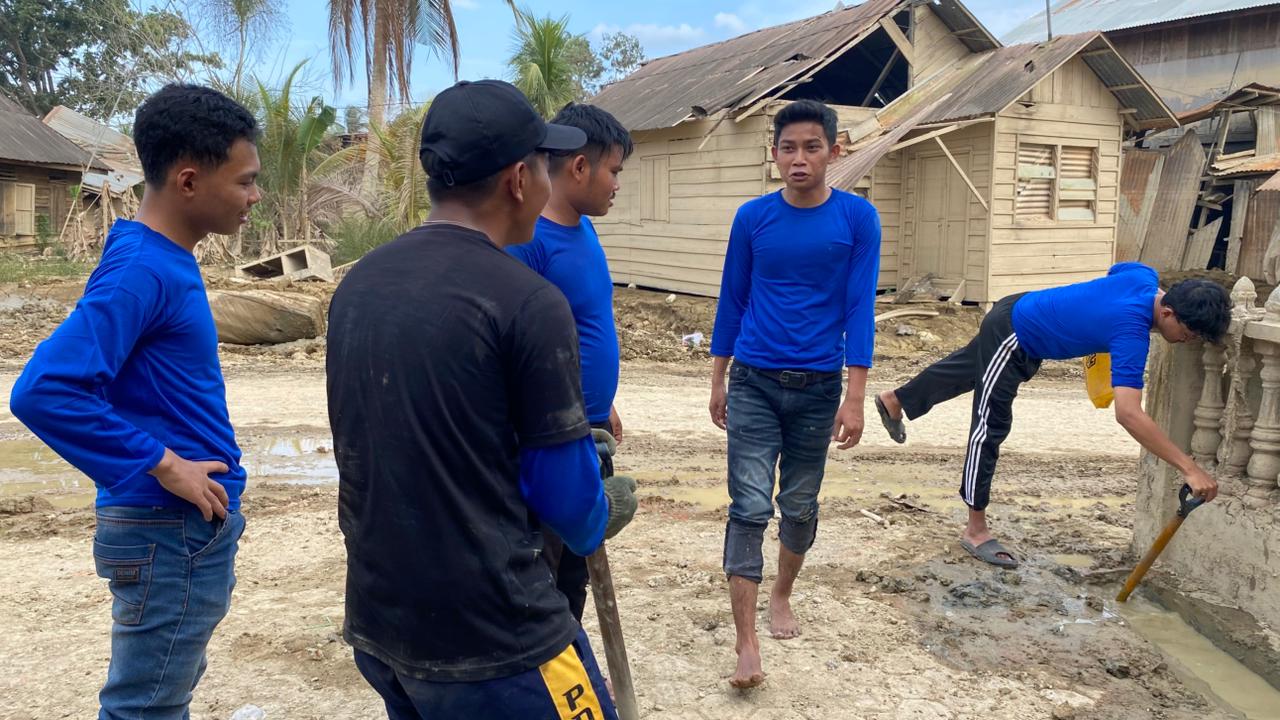 Langkah awal pemulihan difokuskan pada Kantor Datok Penghulu, urat nadi pelayanan desa yang sempat mati suri. Bangunan ini dipenuhi puing dan material sisa banjir bandang. Tanpa ragu, mahasiswa berbaur dengan perangkat desa dalam sebuah gotong royong masif. Mereka tidak sekadar menyingkirkan lumpur pekat, tetapi juga menyelamatkan dan menata ulang perabotan serta dokumen yang tersisa.
