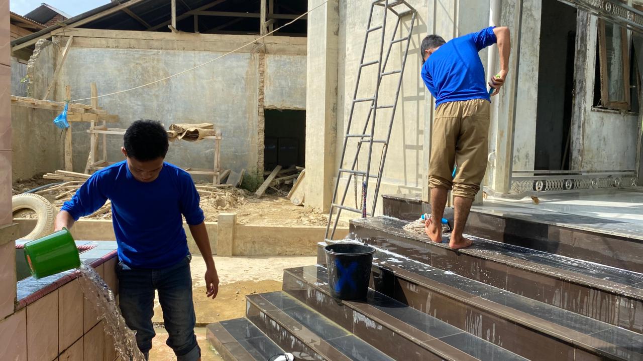 Memahami bahwa masjid adalah jangkar spiritual dan pusat ketenangan warga di tengah krisis, tim mengalokasikan waktu khusus selama tiga hari untuk revitalisasi total area rumah ibadah. Pekerjaan dilakukan secara sistematis dan penuh rasa hormat:
