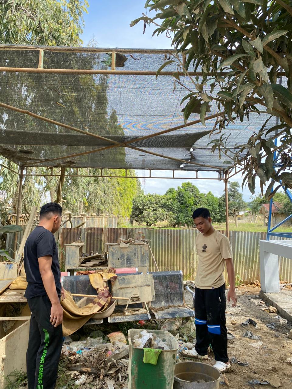 Area Luar: Halaman dan selokan dibersihkan dari sampah bawaan banjir, mengembalikan asrinya lingkungan masjid.