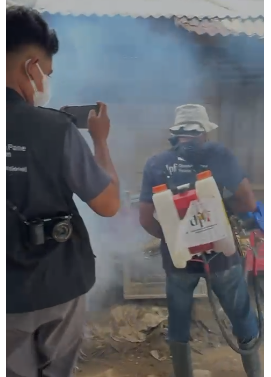 Sebagai langkah preventif yang proaktif, tim mahasiswa melakukan penyemprotan anti-jentik nyamuk di area permukiman warga. Dengan penuh ketelitian dan tanggung jawab, mahasiswa menyisir titik-titik genangan air, selokan, dan area lembap yang berisiko tinggi.